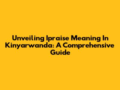 Unveiling 'Ipraise' Meaning In Kinyarwanda: A Comprehensive Guide