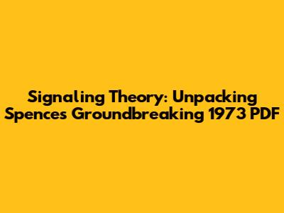 Hey everyone! Ever heard of Signaling Theory? If you're into economics or just curious about how we make decisions in a world full of imperfect information, then buckle up! We're diving deep into Michael Spence's seminal work from 1973, which basically laid the foundation for understanding how signals help us navigate uncertainty. This article breaks down the core concepts, explores real-world examples, and gives you a solid grasp of this super influential theory. Seriously, guys, understanding this is like having a secret weapon in your understanding of the world. So, grab your coffee, and let's get started. Spence's 1973 paper isn't just a historical document; it's a cornerstone for understanding how markets and individuals communicate information. The concept revolves around the idea that one party (the sender) possesses private information and takes actions (sends signals) to credibly convey that information to another party (the receiver). This is particularly relevant in situations where information asymmetry exists, where one party knows more than the other. Think about it: when you're looking for a job, your resume is a signal. When a company advertises a high salary, that's a signal. When a student chooses a difficult major, that's also a signal. Each of these signals is designed to convey specific information, and the credibility of those signals is what determines their effectiveness. Signaling Theory is a critical lens for viewing market dynamics, and it’s a framework that still influences everything from hiring processes to product marketing strategies. The theory helps to explain a whole bunch of stuff we see in everyday life. In this article, we'll break down the key assumptions, explore the implications, and discuss some modern applications. So, let’s get into the specifics. This stuff might seem theoretical at first, but trust me, it’s super applicable.