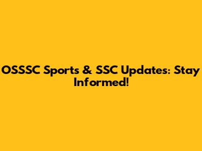 OSSSC Sports & SSC Updates: Stay Informed!