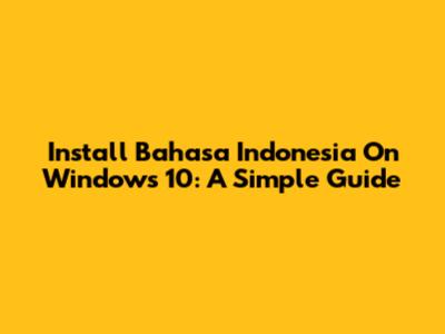 Install Bahasa Indonesia On Windows 10: A Simple Guide