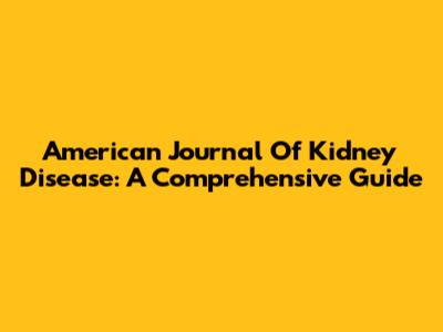 American Journal Of Kidney Disease: A Comprehensive Guide