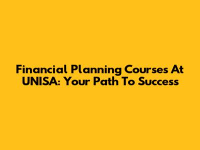 Financial Planning Courses At UNISA: Your Path To Success