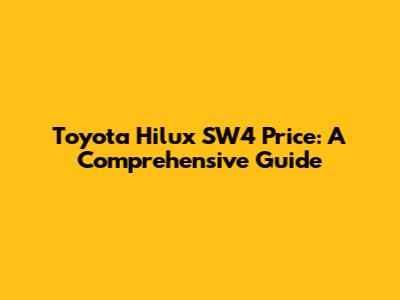 Toyota Hilux SW4 Price: A Comprehensive Guide