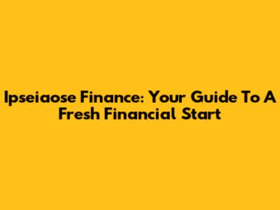 Ipseiaose Finance: Your Guide To A Fresh Financial Start