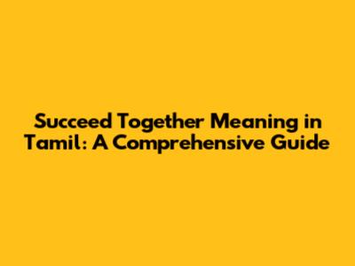 Hey guys! Ever wondered what it truly means to succeed together? In today's interconnected world, the concept of collective success is more relevant than ever. Especially when we dive into understanding it through the lens of different languages and cultures. In this article, we're going to explore the meaning of "succeed together" in Tamil, its importance, and how you can apply it in your daily life.