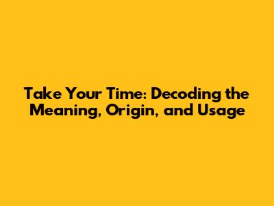 Understanding the Core Meaning of "Take Your Time"