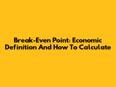 Break-Even Point: Economic Definition And How To Calculate