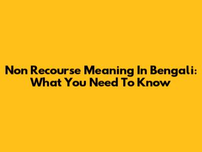 Non Recourse Meaning In Bengali: What You Need To Know