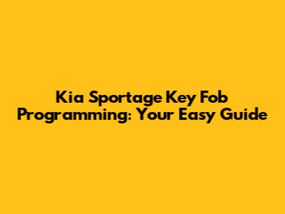 Kia Sportage Key Fob Programming: Your Easy Guide