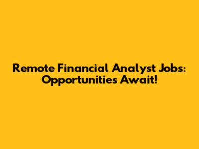 Remote Financial Analyst Jobs: Opportunities Await!