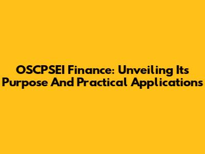 OSCPSEI Finance: Unveiling Its Purpose And Practical Applications