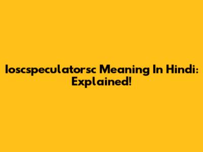 Ioscspeculatorsc Meaning In Hindi: Explained!
