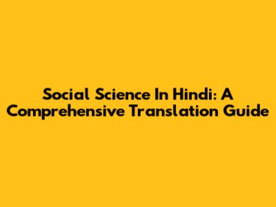 Social Science In Hindi: A Comprehensive Translation Guide