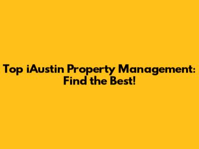 Hey guys! Are you looking for the best property management in iAustin? You've landed in the right spot! Finding a reliable and efficient property management team can be a game-changer, whether you're a seasoned investor or a first-time landlord. Let's dive into what makes iAustin a hot market and how to snag the perfect property management fit for your needs.
