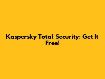 Kaspersky Total Security: Get It Free!