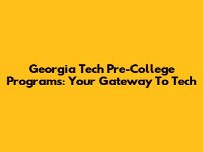 Georgia Tech Pre-College Programs: Your Gateway To Tech