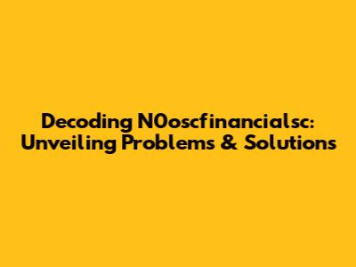 Decoding N0oscfinancialsc: Unveiling Problems & Solutions