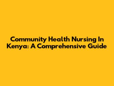 Community Health Nursing In Kenya: A Comprehensive Guide