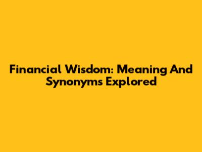 Financial Wisdom: Meaning And Synonyms Explored