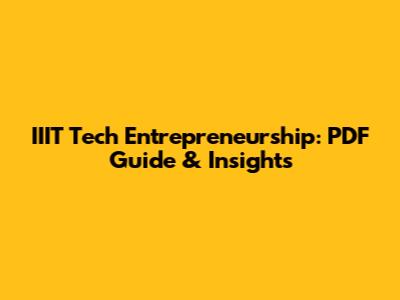 IIIT Tech Entrepreneurship: PDF Guide & Insights