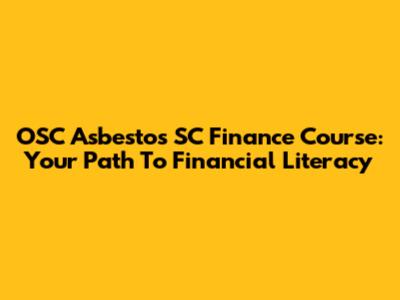 OSC Asbestos SC Finance Course: Your Path To Financial Literacy
