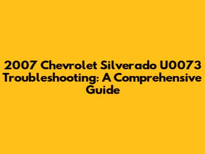 Hey guys! Today, we're diving deep into a common issue that many 2007 Chevrolet Silverado owners face: the dreaded U0073 code. This isn't just some random series of numbers and letters; it indicates a problem within your truck's communication network. Don't worry, though! We're here to break it down, help you understand what's happening, and guide you through troubleshooting so you can get your Silverado back on the road, running smoothly. So, buckle up, and let's get started!