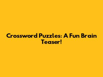 Crossword Puzzles: A Fun Brain Teaser!
