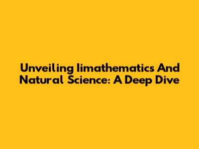Unveiling Iimathematics And Natural Science: A Deep Dive