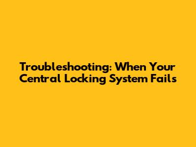 Troubleshooting: When Your Central Locking System Fails