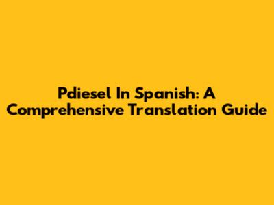 Pdiesel In Spanish: A Comprehensive Translation Guide