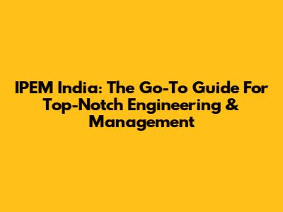 IPEM India: The Go-To Guide For Top-Notch Engineering & Management