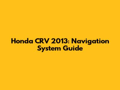 Honda CRV 2013: Navigation System Guide