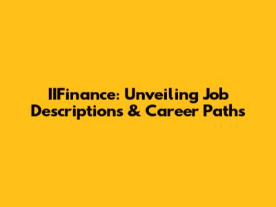 IIFinance: Unveiling Job Descriptions & Career Paths