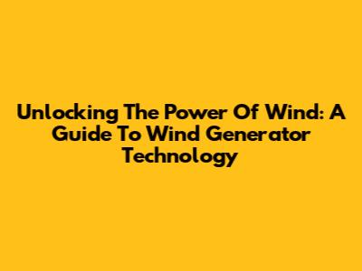 Unlocking The Power Of Wind: A Guide To Wind Generator Technology