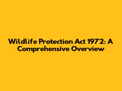 Wildlife Protection Act 1972: A Comprehensive Overview