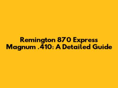 Remington 870 Express Magnum .410: A Detailed Guide