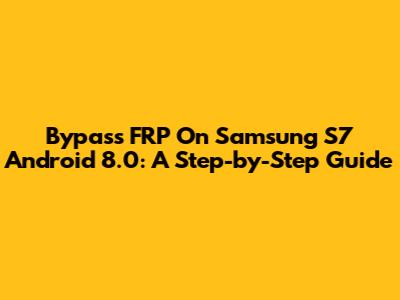 Bypass FRP On Samsung S7 Android 8.0: A Step-by-Step Guide