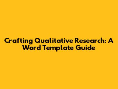 Crafting Qualitative Research: A Word Template Guide