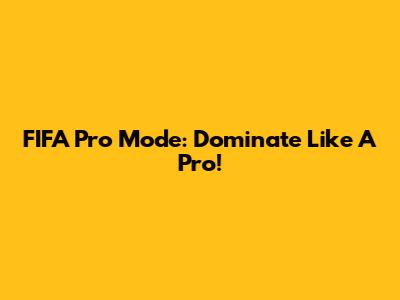 FIFA Pro Mode: Dominate Like A Pro!