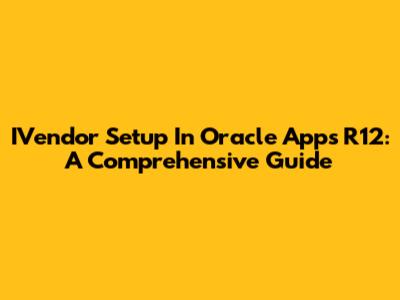 IVendor Setup In Oracle Apps R12: A Comprehensive Guide