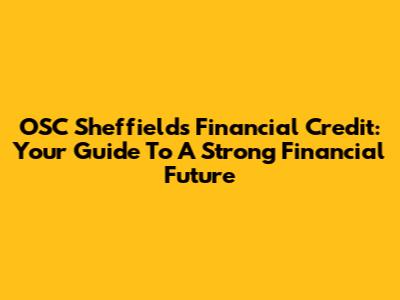 OSC Sheffield's Financial Credit: Your Guide To A Strong Financial Future
