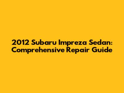 2012 Subaru Impreza Sedan: Comprehensive Repair Guide
