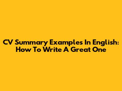 CV Summary Examples In English: How To Write A Great One