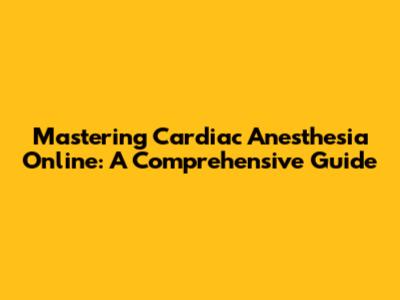 Mastering Cardiac Anesthesia Online: A Comprehensive Guide