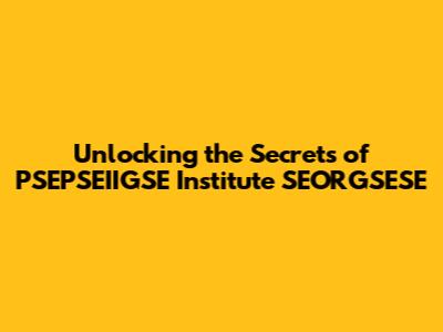 To truly understand what PSEPSEIIGSE Institute SEORGSESE is, we'd need to dig deeper and find some concrete information. Keep reading – we'll explore how to do just that!
