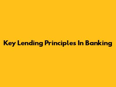 Key Lending Principles In Banking