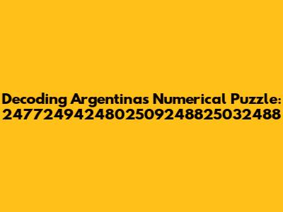 Hey guys, let's dive into a fascinating puzzle! We're going to break down the numerical sequence 2477249424802509248825032488. It might look like a random jumble of numbers, but trust me, there's a story here. This isn't just about simple arithmetic; we're going on a journey to explore the potential meanings and interpretations behind this intriguing sequence, focusing on what it could reveal about Argentina. This article aims to decipher this numerical code and unveil any potential connections to Argentine culture, history, or perhaps even a hidden message. It's like being a numerical detective, searching for clues within these digits.