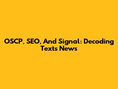 OSCP, SEO, And Signal: Decoding Texts News
