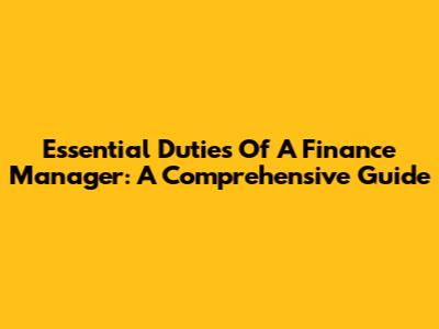 Essential Duties Of A Finance Manager: A Comprehensive Guide