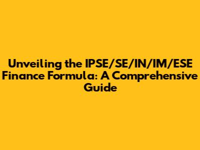 Hey there, finance enthusiasts! Ever heard of the IPSE/SE/IN/IM/ESE finance formula? It's a mouthful, I know, but trust me, it's a powerful framework for understanding and optimizing various financial aspects. Think of it as a secret weapon for navigating the sometimes-turbulent waters of personal and professional finance. In this comprehensive guide, we're going to break down this complex formula into easy-to-digest chunks, ensuring you grasp its core concepts and how you can leverage it for your financial benefit. Ready to dive in? Let's get started!